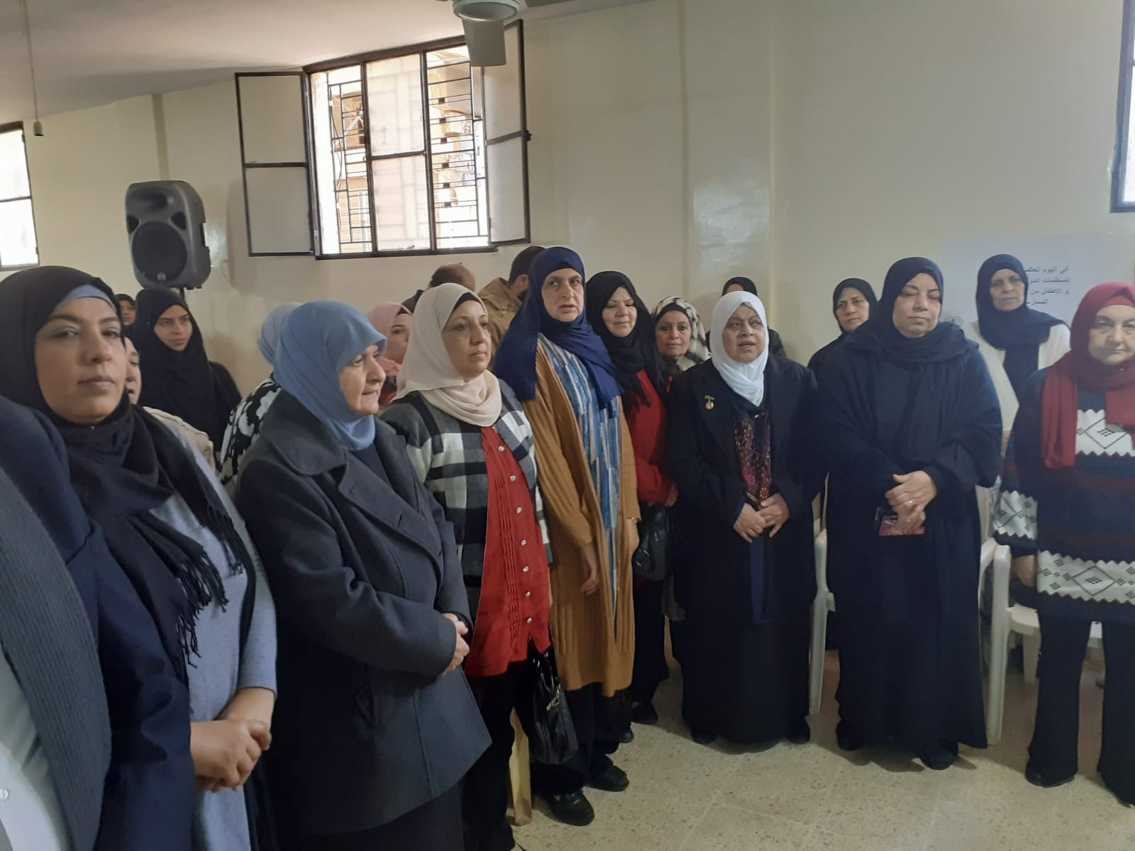بمناسبة يوم المراة العالمي نظم الاتحاد العام للمرأة الفلسطينية وقفة تضامنية في مركز الأمل للمسنين في مخيم عين الحلوة حضرها ممثلي فصائل منظمة التحرير الفلسطينية والمكاتب النسوية والاتحادات واللجان الشعبية الفلسطينية.