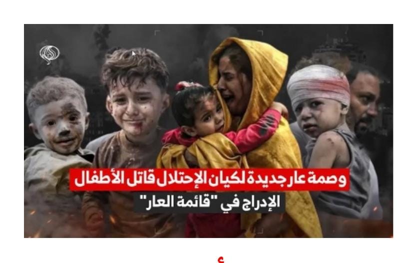 أستحدثت “قائمة العار السوداء” للأمم المتحدة عام 2002، وبناء على طلب مجلس الأمن، ينشر الأمين العام للأمم المتحدة تقريرا” سنويا” يرصد انتهاكات حقوق الأطفال في حوالي 20 منطقة نزاع حول العالم، كما يُدرج في ملحقه المسؤولين عن هذه الانتهاكات، ويُطلق على هذا المُلحق إسم “قائمة العار”، لإحتوائه على أسماء جهات متورطة بارتكاب انتهاكات بحق الأطفال في النزاعات المسلحة. وأشكال الانتهاكات هي القتل، والتشويه، والتجنيد، والإختطاف والتعرض للعنف الجنسي. وبالطبع هذا التوصيف ينطبق بكل المقاييس على الكيان الصهيوني الذي لم يترك نوع من الانتهاكات إلا وأرتكبها في حق أطفال فلسطين.
